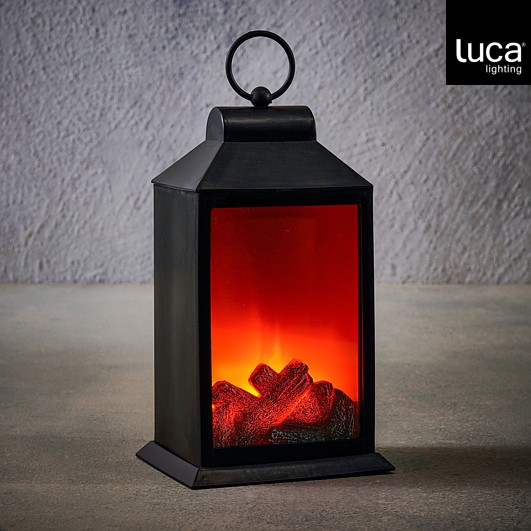 Fenjer crni kamin, toplo bijela, LED PDQ na baterije, timer, 15xw12xh27cm