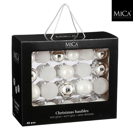 Kuglice od stakla bijele, 42 kom, d7cm - Božićna drvca