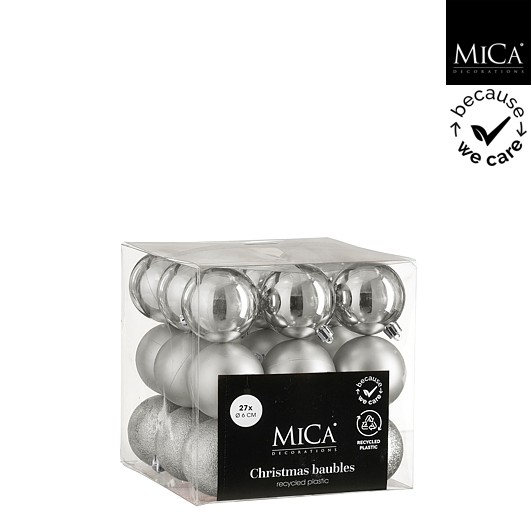 Kuglice srebrne, nelomljive, 27 kom, d6cm - Božićna drvca