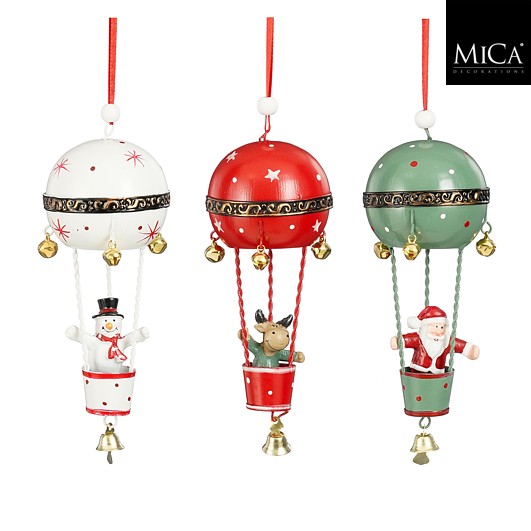 Ukras balon na vrući zrak, djed mraz, snjegović, jelen, crveni, bijeli, zeleni, 3 sort, 6xw6xh16cm - Božićna drvca