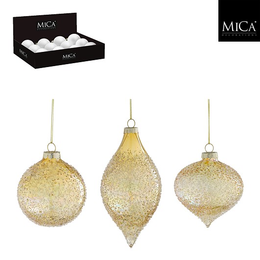 Ukras od stakla kuglica, lukovica, kap, zlatni, 3 sort, d8cm